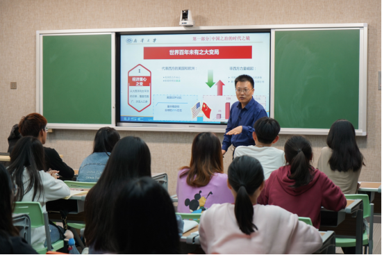 上午,黄秋生与“形势与政策”教研室的全体教师就“如何上好形势与政策课”进行交流。黄教授认为,要上好这门课,要从《形势与政策》的课程设置、线上线下结合的优势、备课经验等方面进行思考。他还结合《形式与政策》的科研优势,就课题申报的前期准备、中期发力和后期成果进行阐述。