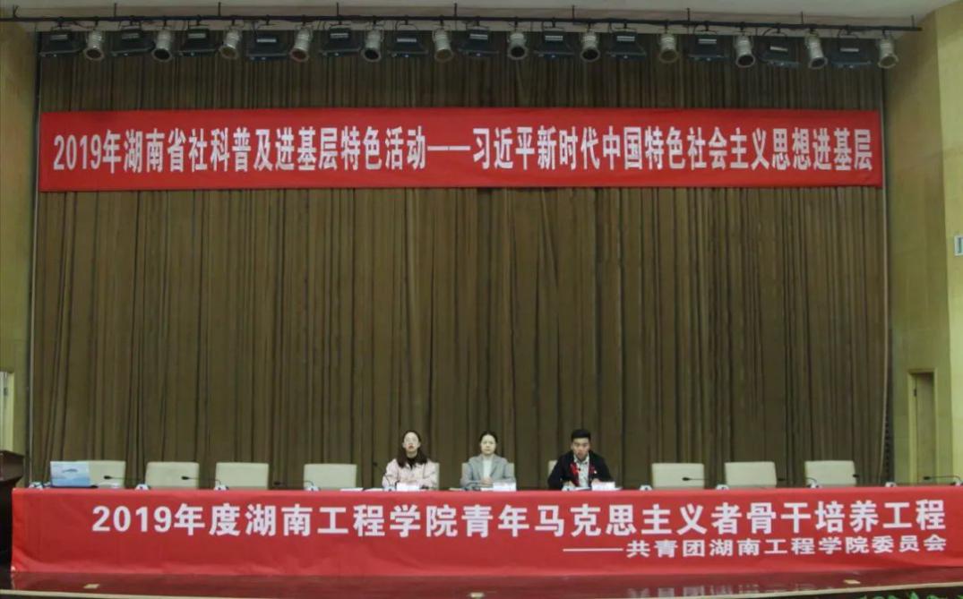 11月23日上午,根据2019年湖南省社科普及进基层特色系列活动安排,省社科联科普办拟联合湖南工程学院思想政治理论课社会实践中心、湖南工程学院团委举办的“新时代中国特色社会主义思想进基层”社科知识培训班在一报告厅举行。2018年“青马工程”优秀学员代表、2019年 “青马工程”学员以及各学院团员青年代表共计400余人参加。