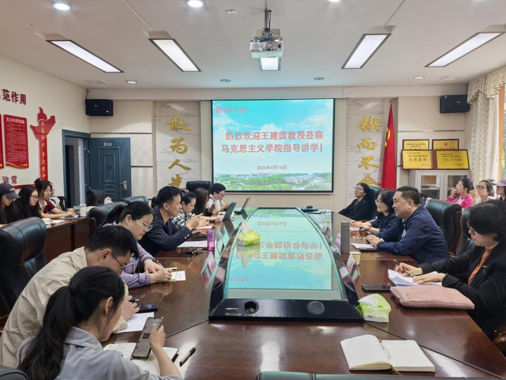 4月16日下午,卓越大讲堂系列讲座之“中国式现代化必须坚持党的领导的多维审视”在我校英国上市公司365E125会议室举行。讲座由华中师范大学教授、政治与国际关系学院副院长、博士生导师王建国主讲。学院相关负责人、学科团队骨干、青年教师代表和学生代表参加会议,会议由英国上市公司365院长刘灵主持。