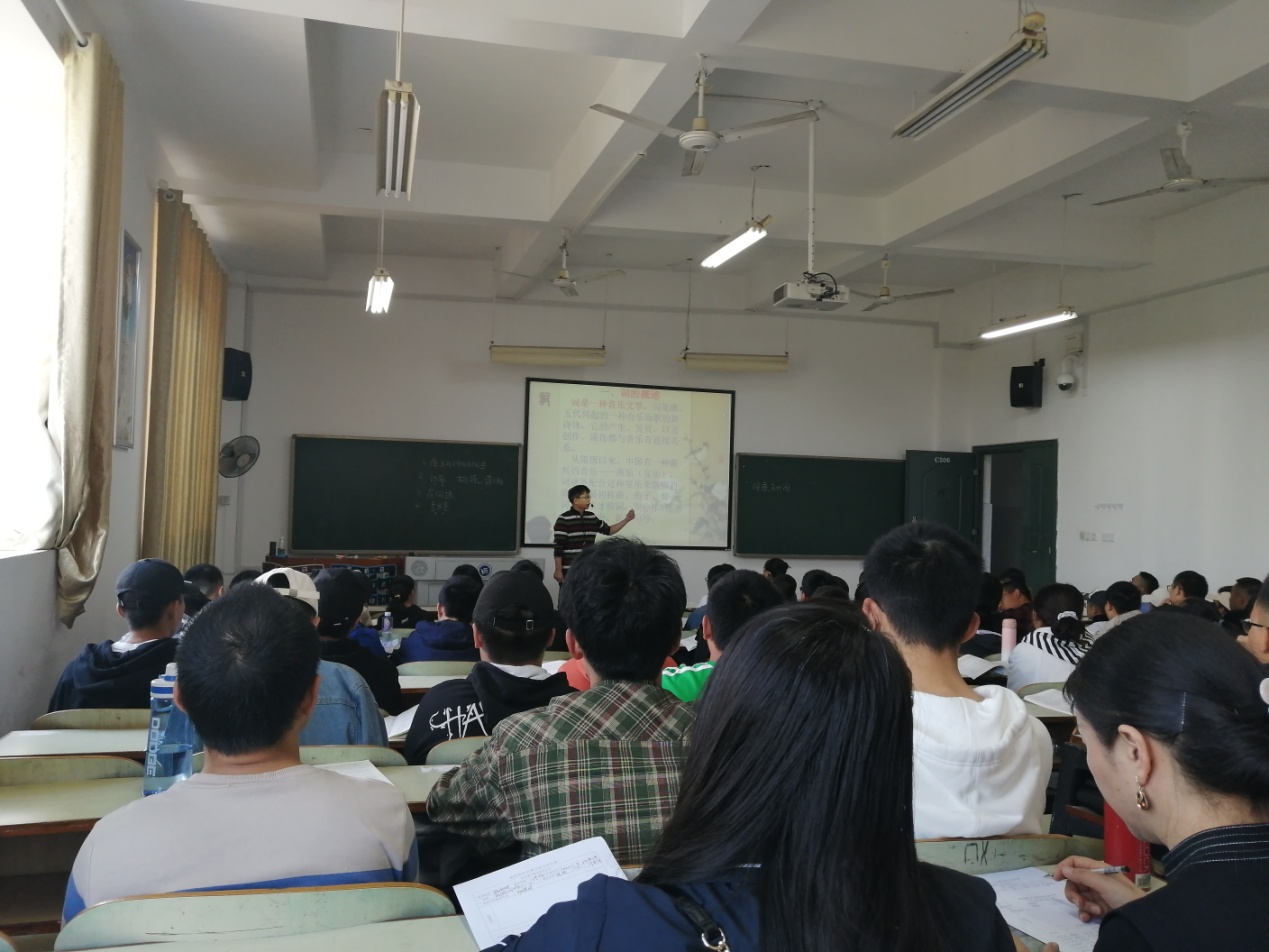 2020年11月9日上午第3节课,我院在主校区教学楼C—506教室开展了一场《大学语文》教学公开课活动,授课教师为唐林轩老师,授课班级为微电子工程2003、2004班,授课内容为《唐、五代词》。