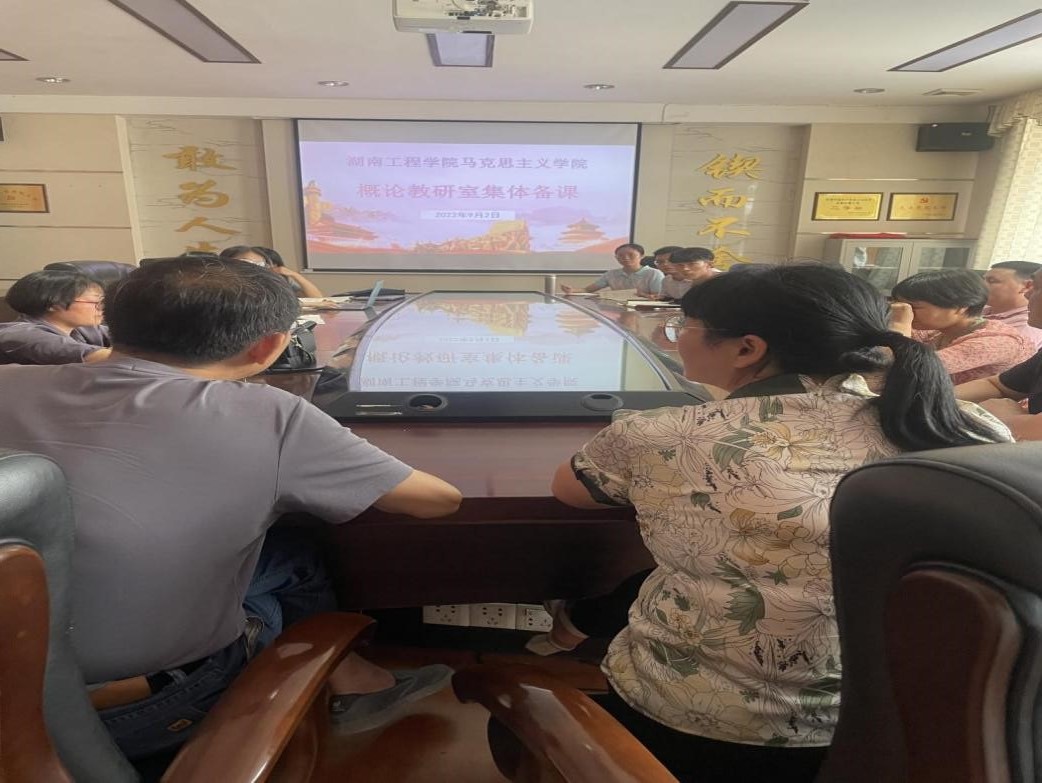 为迎接党的二十大顺利召开,推动习近平新时代中国特色社会主义思想入脑入心,提升《毛泽东思想和中国特色社会主义理论体系概论》教研室新进青年教师教学水平,9月2日下午,概论教研室全体教师在E125室召开集体备课会,学院副院长汤菊平、原学院院长彭栋梁参加。