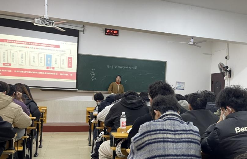 课堂上,刘潇敏老师以《新千里江山图》视频为切入点,系统展现传统与现代交融的中华文化魅力。刘老师抛出“什么是文化”引发思考,学生踊跃发言后,刘老师从内涵、表现形式等维度解析文化基本概念,强调文化是民族的血脉、精神的家园。整堂课理论详实、案例丰富,从历史到现代,从本土到国际,生动诠释了文化强国的战略逻辑。学生和教师纷纷表示,将自觉担当文化使命,为强国建设贡献力量。